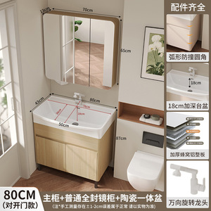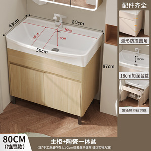 原木风蜂窝铝浴室柜落地陶瓷一体大肚盆洗手盆柜组合洗漱台阳台柜
