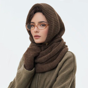 新款纯色时尚休闲针织帽子交叉围脖一体两用秋冬季男女保暖外出