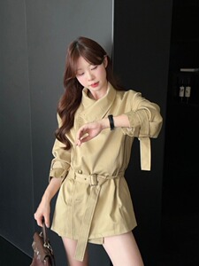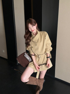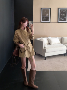 PPHOME复古卡其色翻领收腰风衣外套女秋季韩系高级感休闲气质大衣