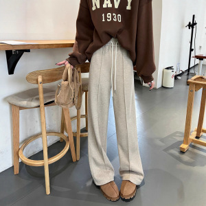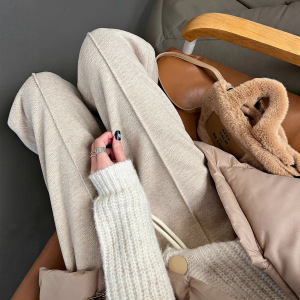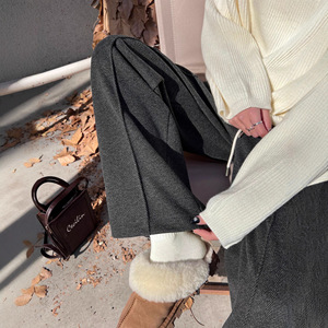 重工醋酸羊绒人字纹直筒裤女2025秋冬新款垂感显瘦休闲毛呢裤子