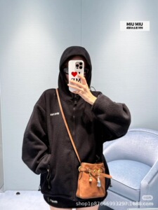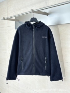 现货原标MIU缪家小红书网红款刺绣徽标摇粒绒连帽拉链开衫外套