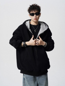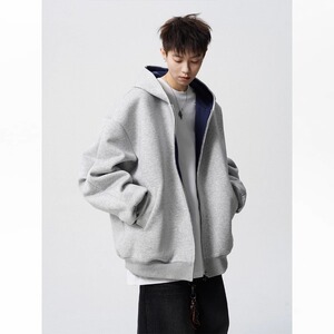 美式重磅连帽开衫卫衣男春秋季新款潮牌复古休闲上衣外套宽松夹克