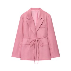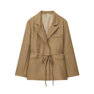 跨境外贸女装2025秋季新品欧美风时尚系列亚麻混纺休闲西装外套