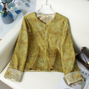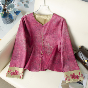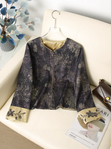 批发中式气质设计感国风外套2025新款圆领长袖外套上衣开衫高级感