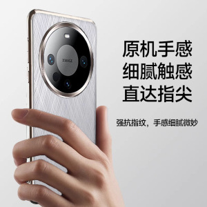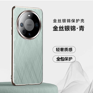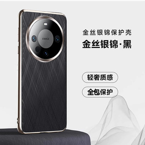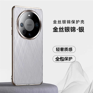 适用华为Mate60Pro+手机壳电镀素皮全包防摔金丝银锦纹轻薄时尚套
