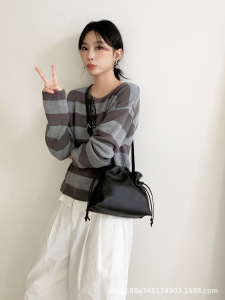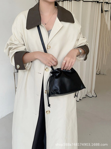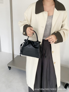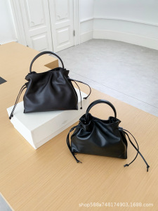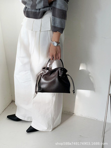 头层羊皮抽绳福袋包云朵包女高级感时尚手拎小包褶皱斜挎包水桶包