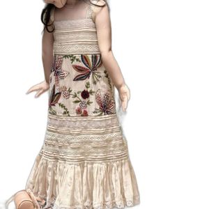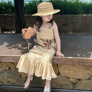 女童连衣裙儿童裙子夏装2025新款女孩米白色背带裙高级感小洋裙薄