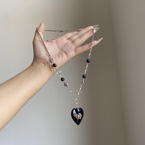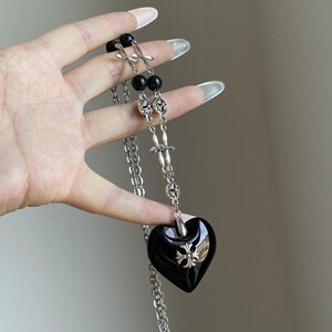 爱心十字架吊坠项链女甜酷辣妹风长款毛衣链ins小众个性时尚配饰