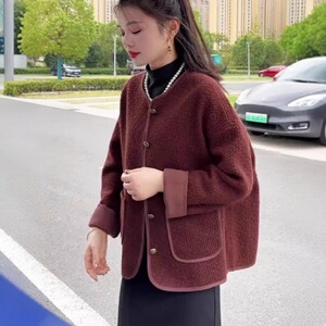 皮毛一体爆款小香风外套女2025秋季新款小个子休闲宽松羊羔毛上衣