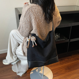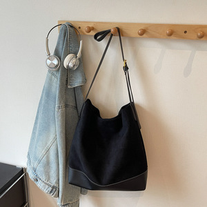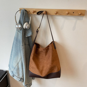 秋季包包女软皮磨砂手提水桶包2025新款拼色单肩大容量斜挎包韩版