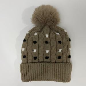 圆点提花针织帽秋冬男女新款毛线帽加绒加厚保暖潮流百搭帽子批发