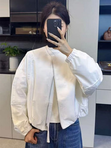 韩版简约圆领纯色短外套女2025秋季新款休闲宽松百搭小个子夹克潮