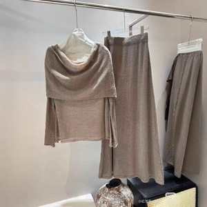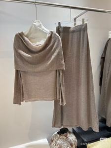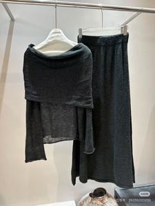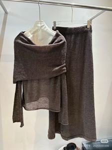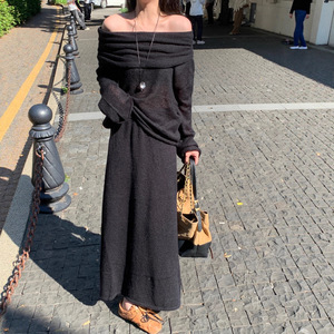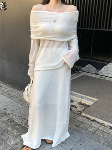 2025秋季新款韩版洋气毛衣百搭显瘦一字肩针织衫长袖露肩微透上衣