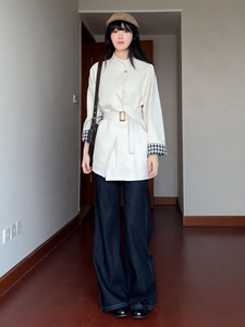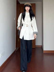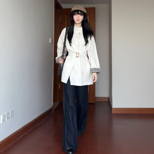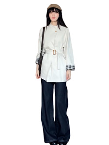 韩系高级感白色立领风衣外套女春秋2025新款小个子中长款气质大衣