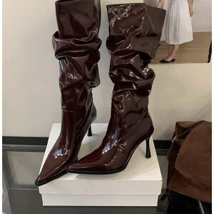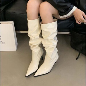 不过膝长筒靴秋冬新款跨境长靴细跟欧美骑士复古高跟尖头堆堆靴女