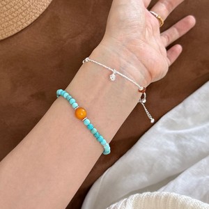 新中式复古绿松石天然蜜蜡隔片手串简约大气细款叠戴百搭高级手饰