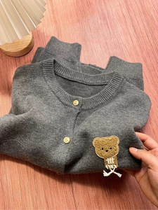 针织衫女士秋季百搭软糯开衫内搭韩版小熊可爱毛衣外套学院风上衣