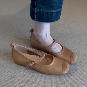 羊皮版~复古软底真皮拼接一字带玛丽珍单鞋女浅口通勤平底芭蕾鞋
