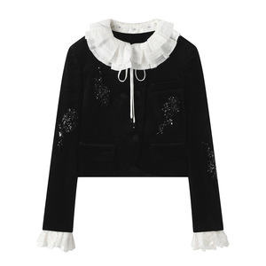 现货2025秋新款宫廷感钉珠刺绣外套上衣LF25Q41SC096