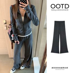 【深灰色套装】早秋季韩系高级感穿搭一整套2025新款/今年流行慵懒风休闲气质减龄/美式复古休闲运动套