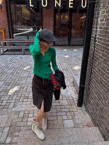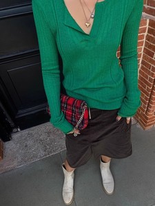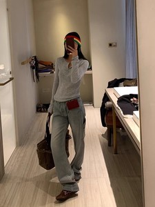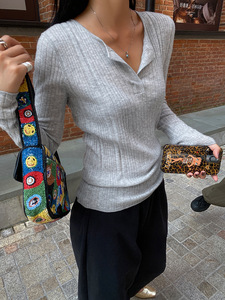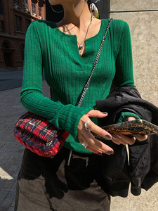 针织衫女2025新款春秋长袖秋季薄款针织早秋v领正肩修身气质上衣
