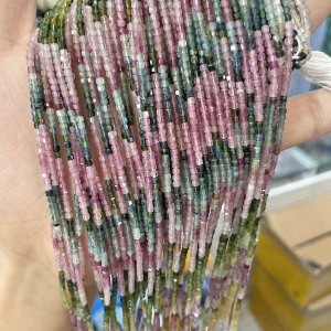 纯天然无优化分色碧玺切面四方珠刻面方糖散珠半成品手工DIY手链