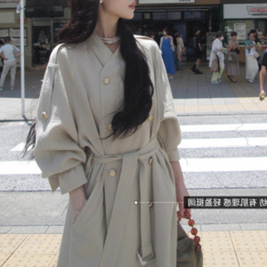 巨好看风衣女2025新款中长款外套高个子亚麻大衣早秋穿搭长袖女装
