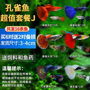 【3-4cm】孔雀超值套餐J 共16条 6对送2对备损