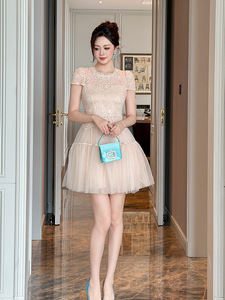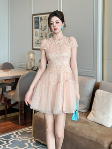 2025夏季新款女装甜美气质显白显嫩蕾丝拼接网纱蓬蓬连衣裙21789