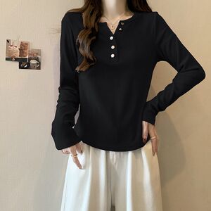 纯棉正肩纯欲长袖t恤新款大码胖mm半开领打底春秋显瘦休闲上衣ins