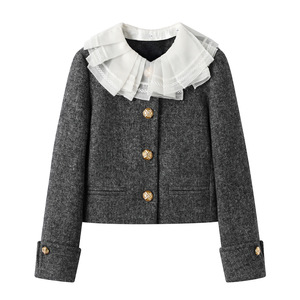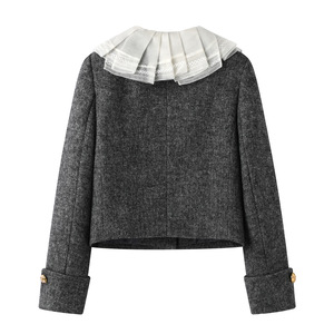 现货2025秋新款时尚百褶领口小香外套上衣LF25Q41SC187