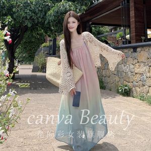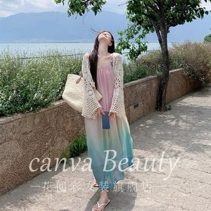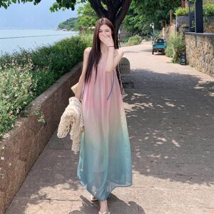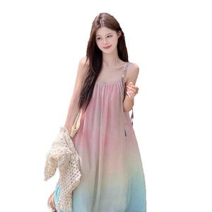 气质度假渐变吊带连衣裙女夏季2025新款宽松显瘦慵懒无袖韩系长裙