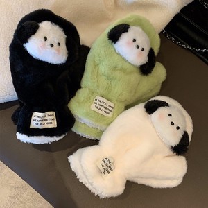 可爱毛绒手套女冬季帕恰狗保暖加绒加厚全包连指学生骑行防寒手套