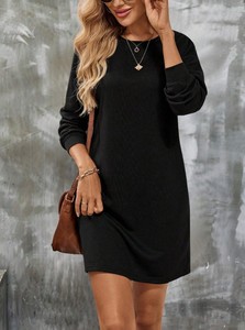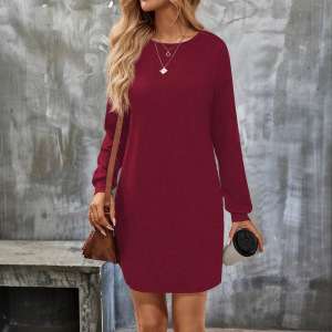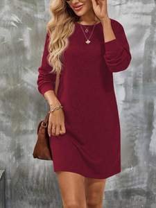 2025 欧美 跨境亚马逊独立站新款长袖秋冬圆领针织纯色女装连衣裙