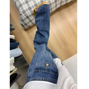 美式辣妹低腰直筒牛仔裤女2025新款复古水洗设计感显瘦拖地阔腿裤