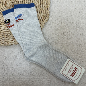秋冬新款袜子女个性潮袜AB版刺绣小猫小鱼字母中筒堆堆袜棉袜批发