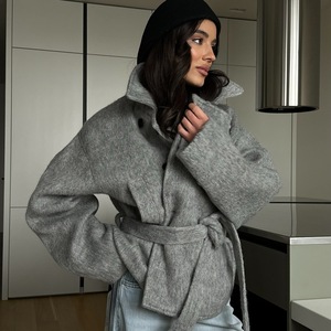 秋冬季跨境欧美时髦款~气质时尚纽扣系带短款呢子外套2025年