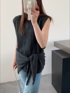 大码女装针织衫马甲2025早秋新款设计感镂空宽松圆领背心披肩套装