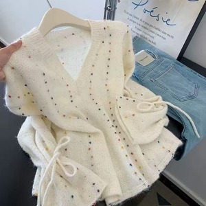 广州十三行高货爆款~重工亮片v领针织衫2025年韩系设计感软糯毛衣