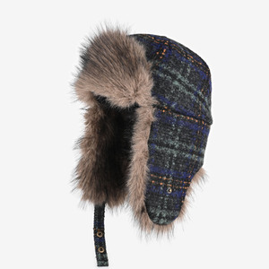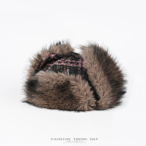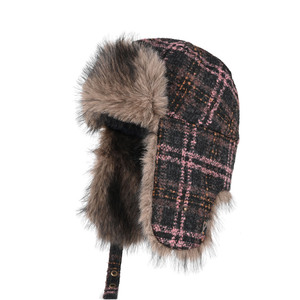 长毛绒格纹雷锋帽男女冬季户外保暖加厚飞行员帽子东北骑车护耳帽