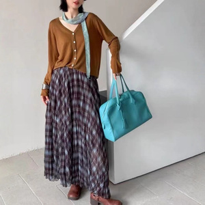 韩系复古气质撞色设计格纹半身裙女2025秋款高腰垂感休闲长裙