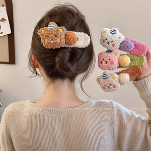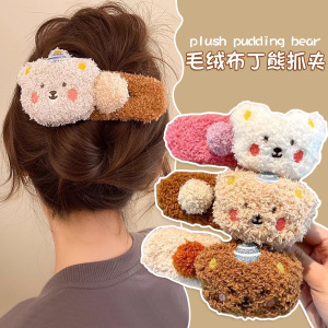 可爱卡通小熊毛绒发夹女2025新款高级感发卡后脑勺大号鸭嘴夹头饰
