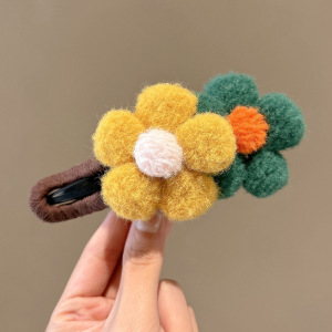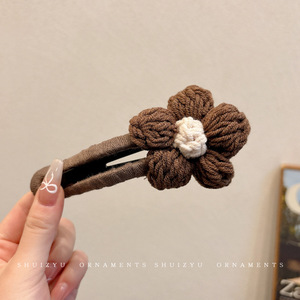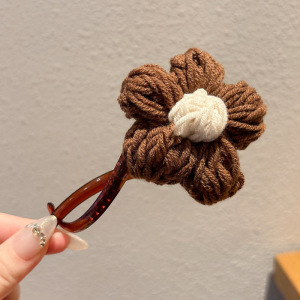 8#咖色毛线花朵12cm鸭嘴抓夹