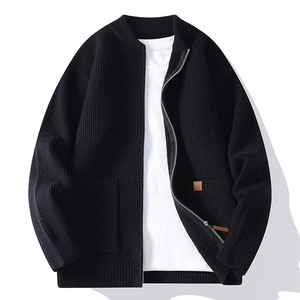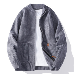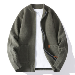 2025跨境男士新款秋季时尚休闲毛衣开衫男针织衫简约条纹夹克外套