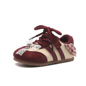 女童运动鞋2025秋季新款低帮防滑蕾丝宝宝鞋女宝时尚百搭休闲单鞋