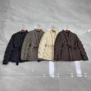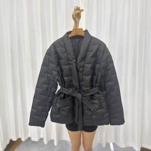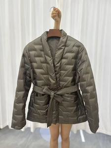 秋冬新款V领收腰显瘦轻薄白鸭绒压胶羽绒外套短款时尚百搭
