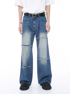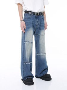 新款美式高街毛边设计感宽松直筒中腰牛仔裤小众设计垂感百搭拖地