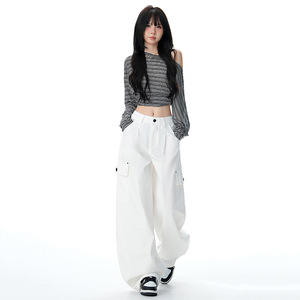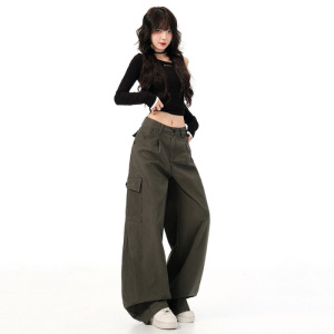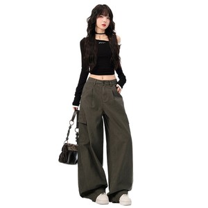 美式弯刀牛仔裤女款秋季新款设计感多口袋宽松慵懒休闲工装阔腿裤
