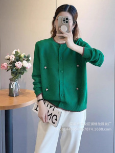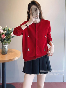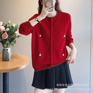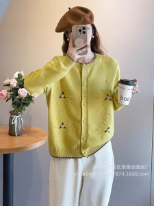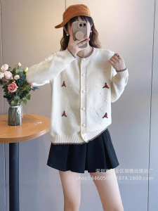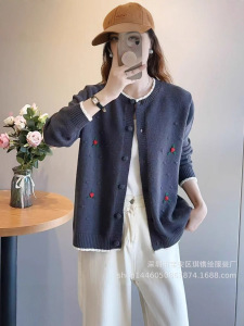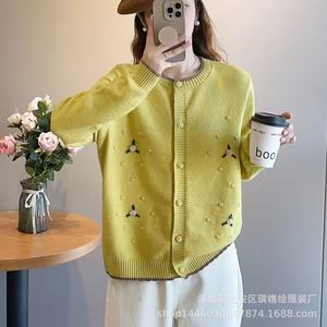 琪镌绘制刺绣圆领针织开衫上衣女装早秋新款宽松休闲时尚显瘦毛衣
