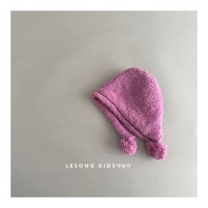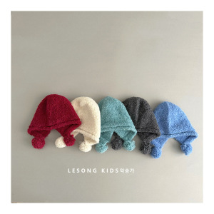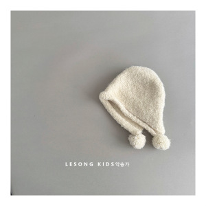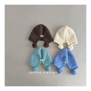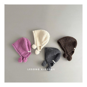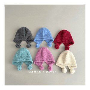 2025新儿童韩系ins简约毛球护耳帽冬季宝宝保暖搭配球球包头帽子